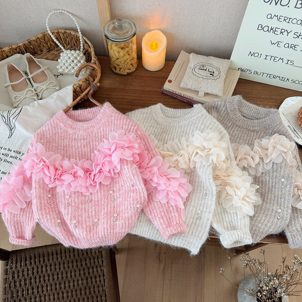 [90~120]ロマンティックレース付きプルオーバー ピンク