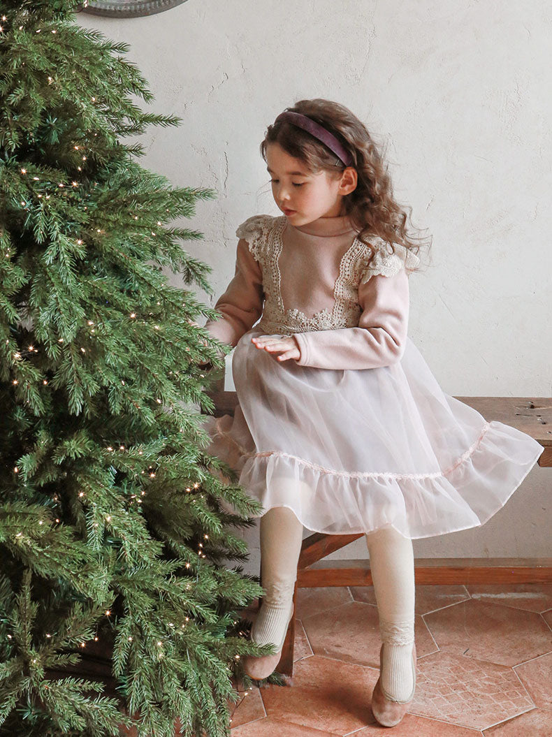 [90~120]レース切り替え×チュールスカートのドッキングワンピース