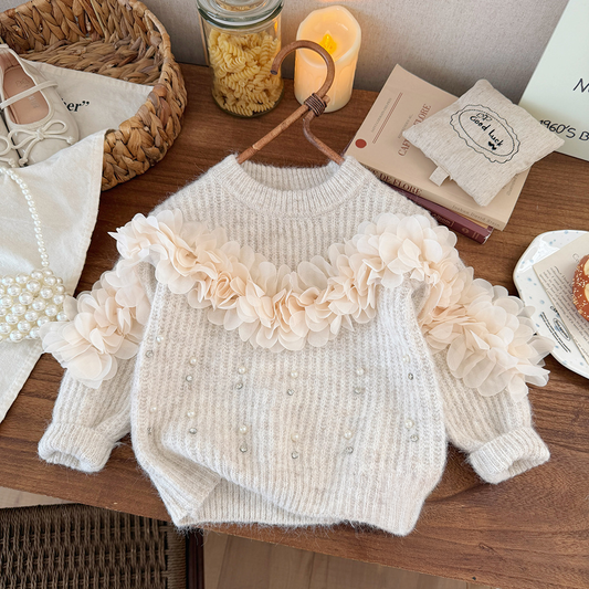 [90~120]フラワーチュールニットトップス