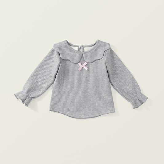 [90~140]ガーリーリボン付きリブトップス(裏起毛)