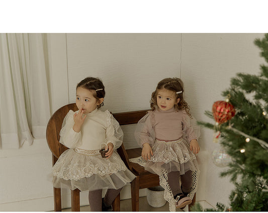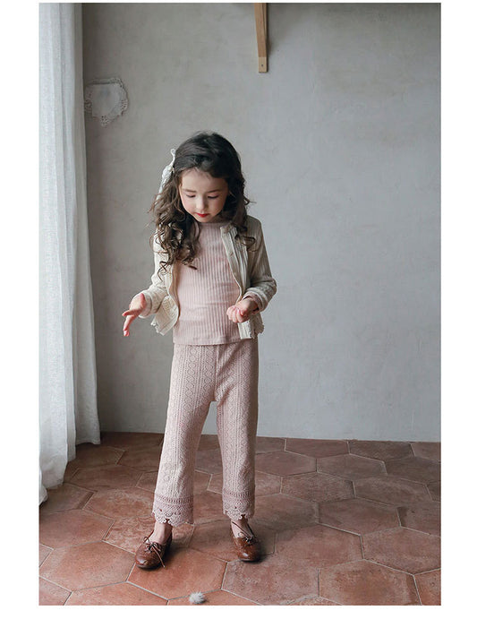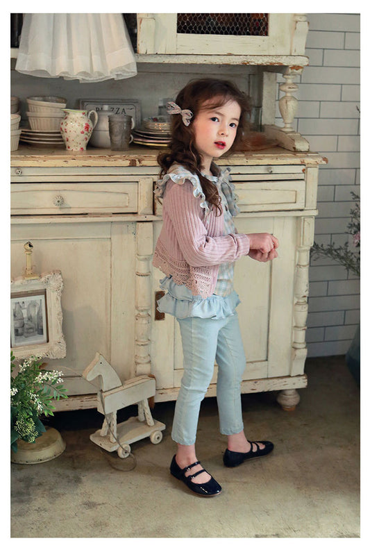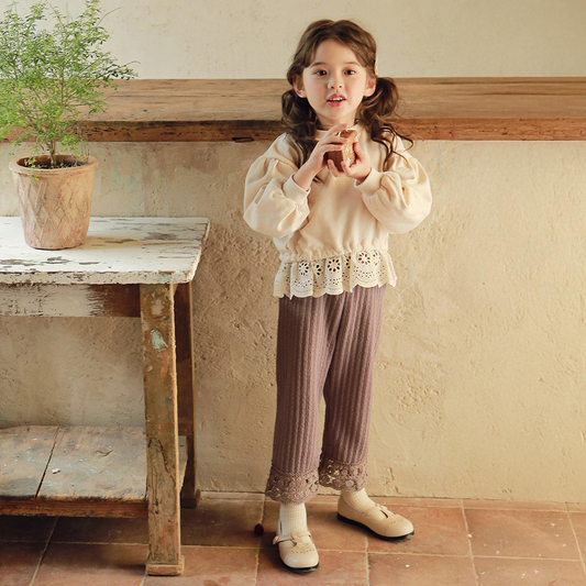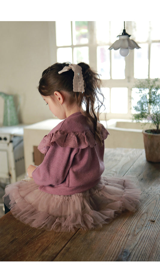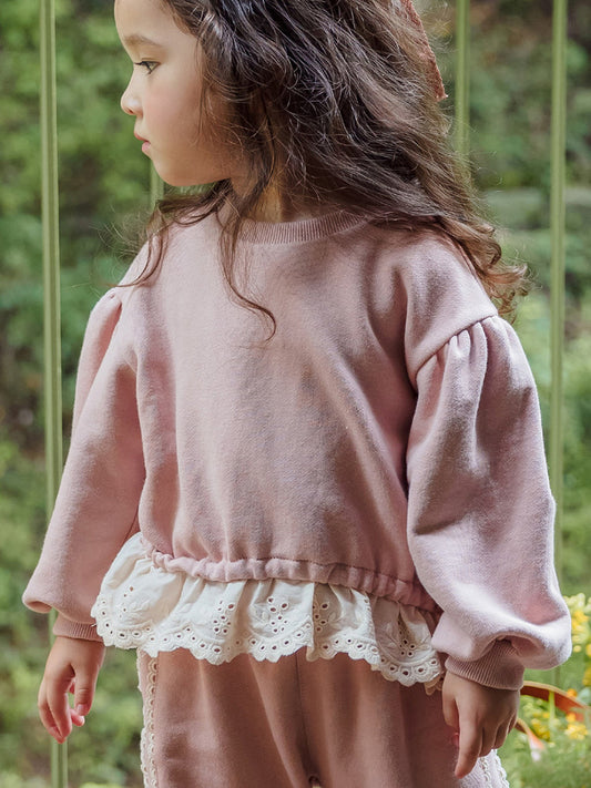 [90~120]ロマンティックレース付きプルオーバー ピンク