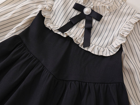 [90~140]クラシカルフリルリボンワンピースセット ホワイト