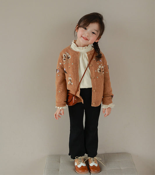[90~140]フレアリブレギンス ストレッチパンツ ホワイト/グレー/ブラック