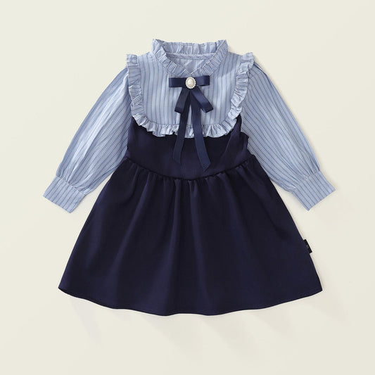[90~140]クラシカルフリルリボンワンピースセット ブルー