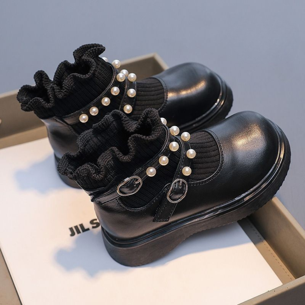 ふわっと広がるフリルに、キラリと輝くパールをあしらった